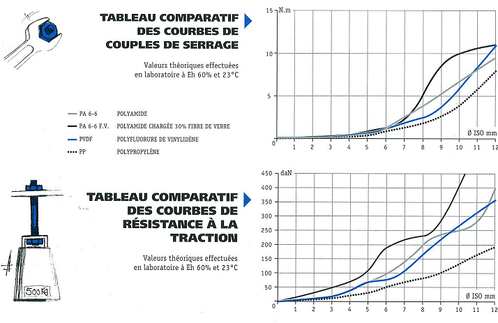 La visserie nylon est en PA 6.6 sauf indication contraire dans la désignation du produit.