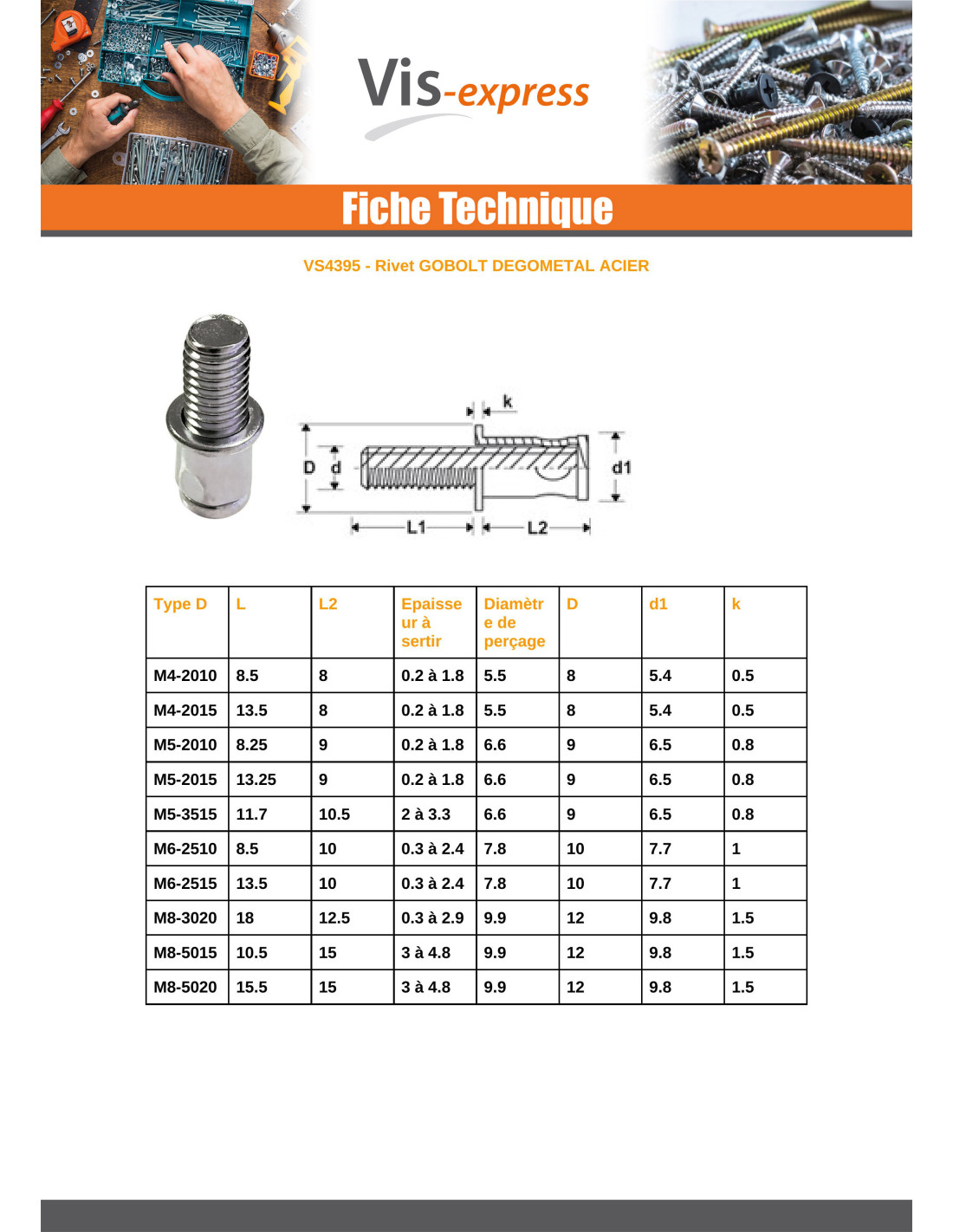 Goujon à sertir AVEUGGOBOLT M6X10 EPP0.5-2.5 à